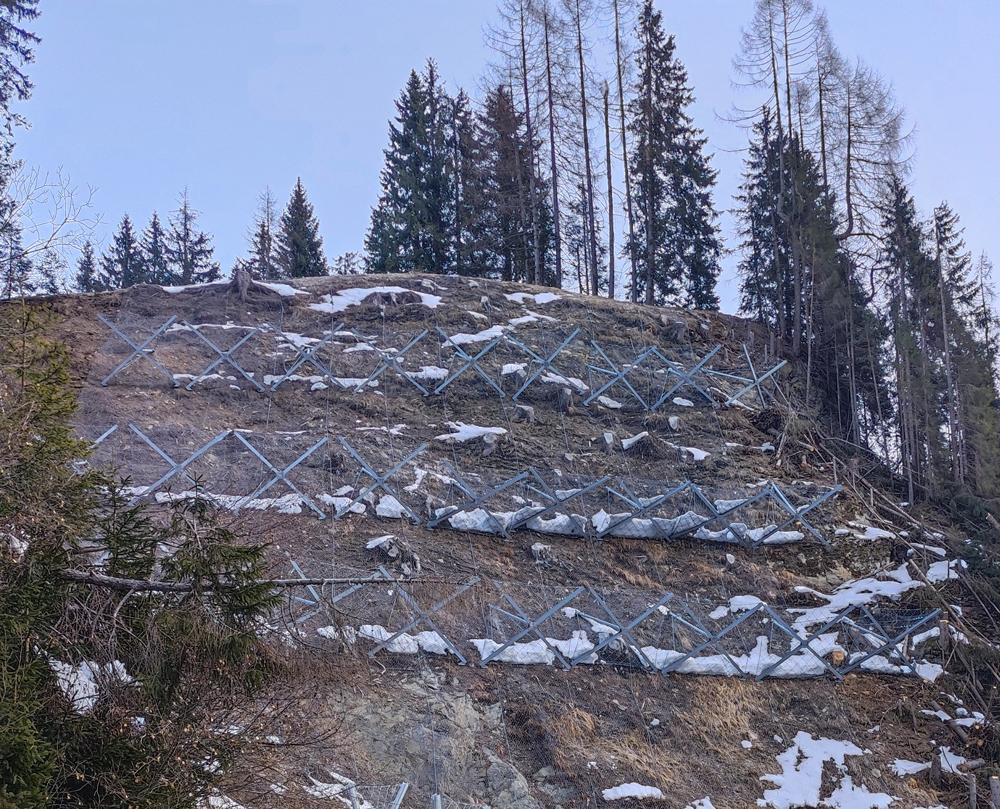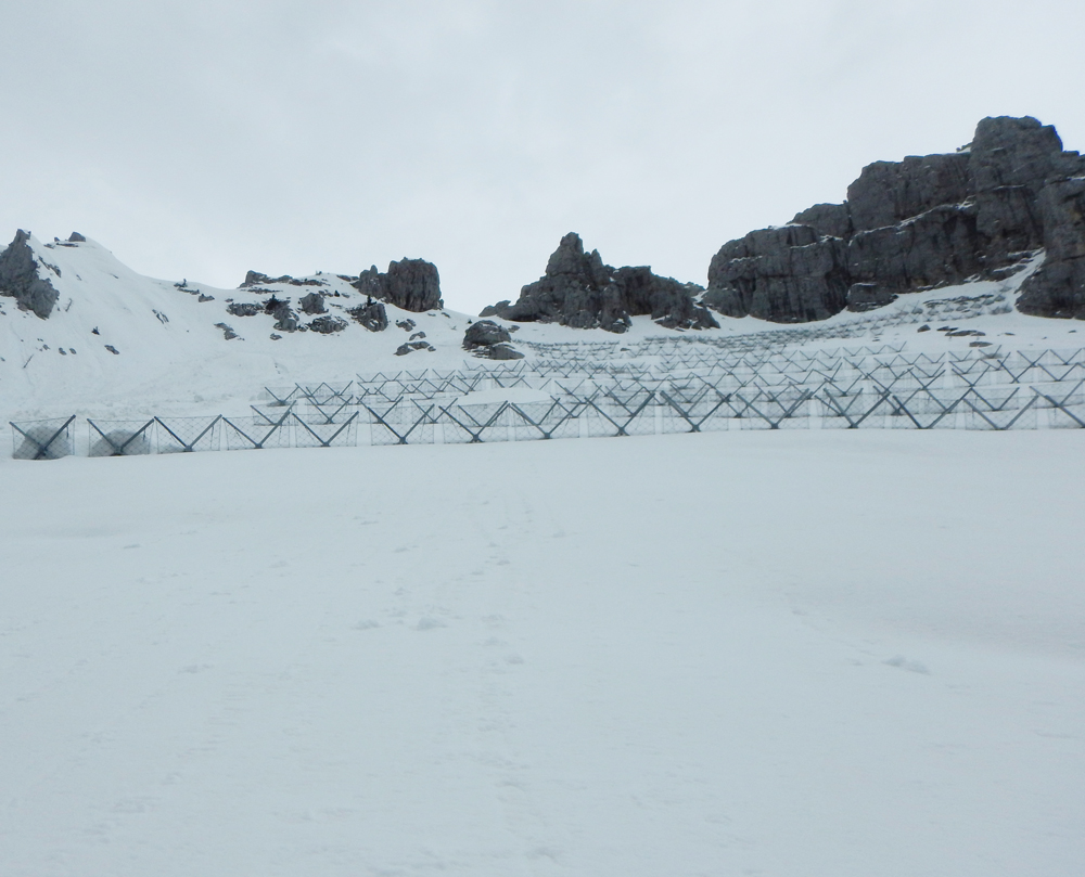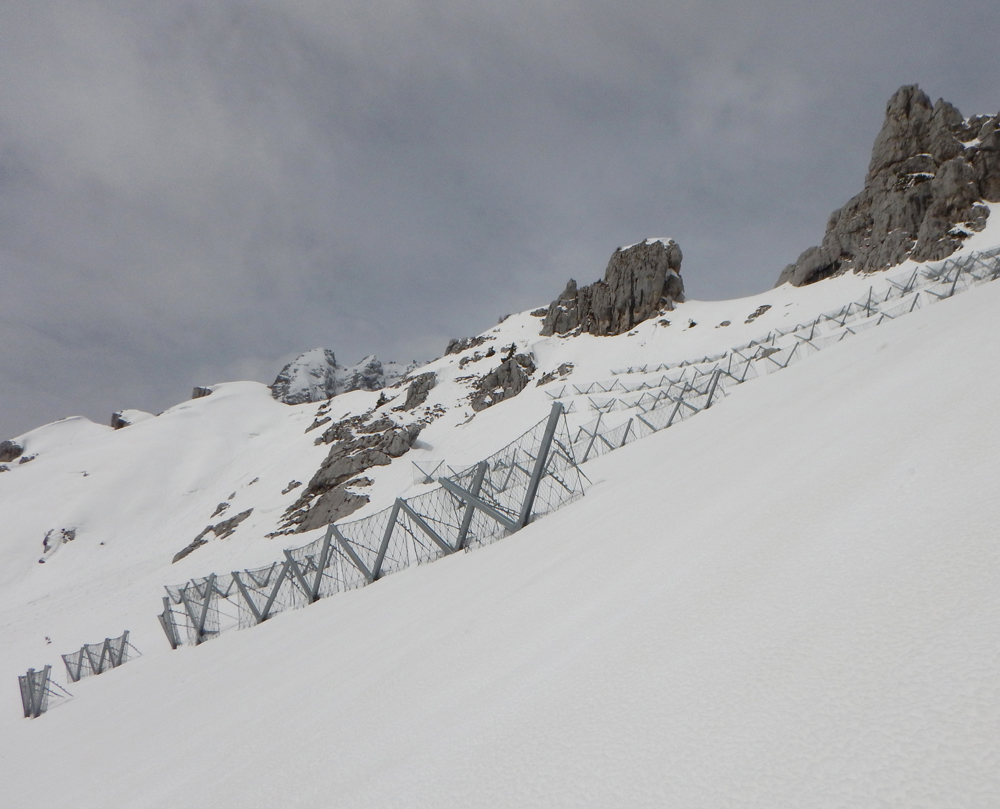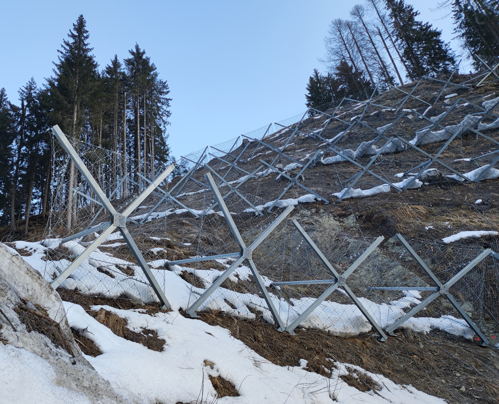 Barriera modulare del tipo monoancoraggio fermaneve per spessore del manto nevoso fino a Dk 4.0 e per contenimento terreni